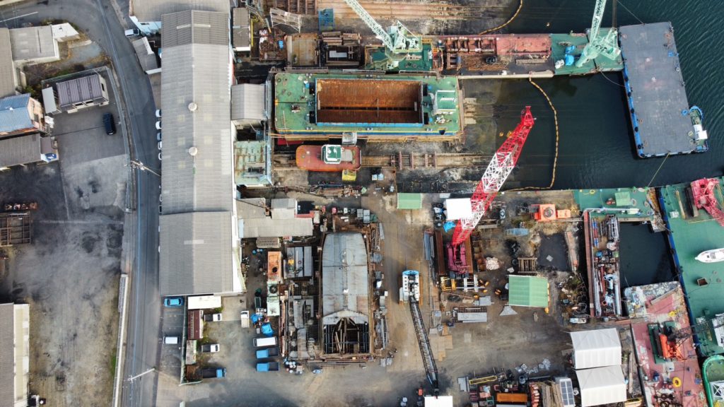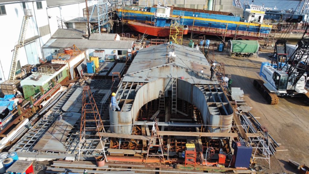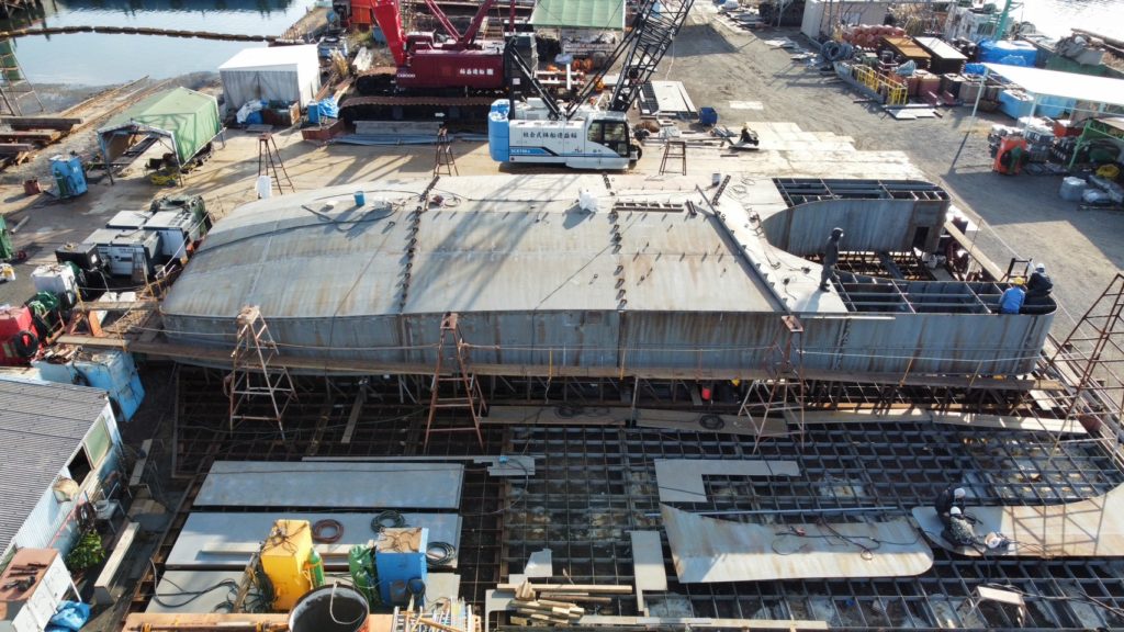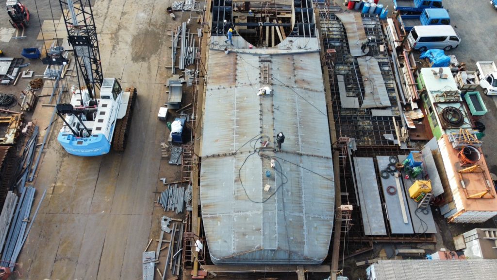 先日船底部分の途中経過をドローンで撮影して頂いたので