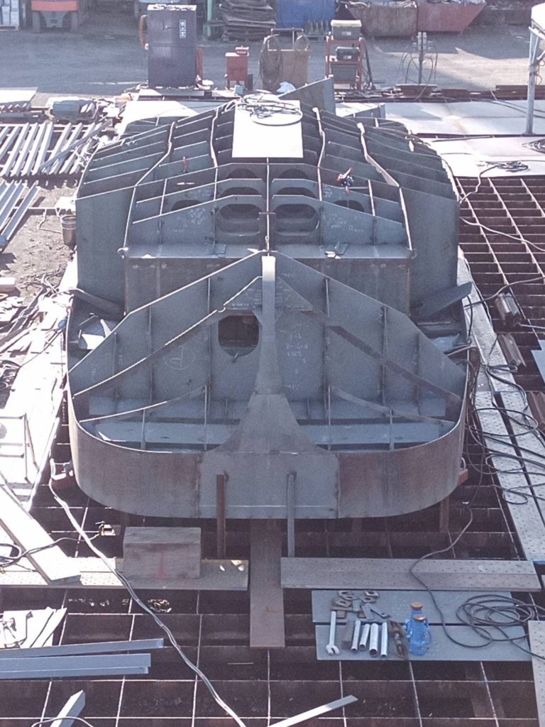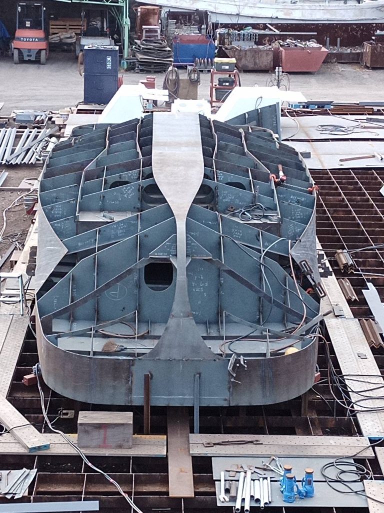 今回は外板や、フレーム(助骨)部分の大半が出来上がり船体強度を担う主要構造があらわになってきました☺